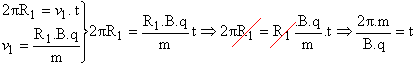 Esta última fórmula contiene la idea fundamental que permitió a Lawrence construir su máquina. El tiempo necesario para completar una órbita depende únicamente del campo magnético, de la carga y la masa de la partícula, no de la velocidad con que la partícula se mueve. La velocidad y el radio al ser directamente proporcionales dependen del período, el que es exactamente el mismo en todos los casos.