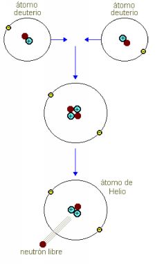 Fusión nuclear: Es una reacción entre dos núcleos de átomos ligeros en la que se produce un núcleo de un átomo más pesado, unido a la liberación de partículas elementales y de una gran cantidad de energía. La energía liberada en el Sol y en las estrellas proviene de reacciones de fusión nuclear.
