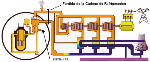 El agua derramada del dañado circuito Primario es recogida en el sumidero del recinto de Contención y recirculada para volver a ser inyectada en la vasija, (circuito primario de emergencia).
