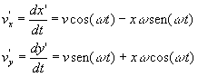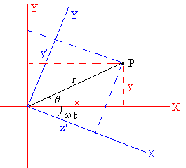 En un instante t la partícula dista r del origen y hace un ángulo θ con el eje X. La posición de la partícula en el Sistema de Referencia Inercial es x=r·cosθ La posición de la partícula el Sistema de Referencia No Inercial es x’=r·cos(θ+w·t)=x·cos(w