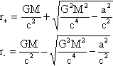 Los radios de los horizontes externos e internos, que denotaremos r+ y r- respectivamente, son: