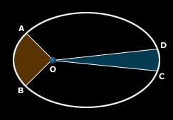 En el gráfico superior: el tiempo que le toma al planeta recorrer del punto A al punto B de su órbita es igual al tiempo que le toma para ir del punto C al D, por tanto, las áreas marcadas OAB y OCD son iguales. Para que esto suceda, el planeta debe desplazarse más rápidamente en las cercanías del Sol (en el foco de la elipse, punto O del gráfico)