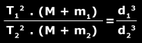 Donde T1 y T2 son los períodos orbitales y d1 y d2 las distancias a las cuales orbitan del cuerpo central. La fórmula es válida mientras las masas de los objetos sean despreciables en comparación con la del cuerpo central al cual orbitan.