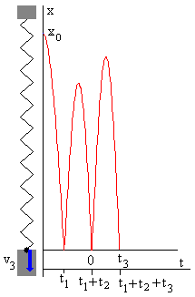 El oscilador forzado que rebota en el origenEl choque de la partícula con la barrera hace que su velocidad cambie bruscamente de signo. Para describir su movimiento tenemos que resolver la ecuación diferencial de las oscilaciones forzadas en los intervalos de tiempo entre dos choques consecutivos, tal como se describirá en este apartado. Primer rebote