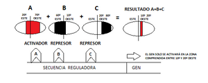 se continuará leyendo el código del gen, en caso contrario no se leerá. Pero, ¿cuales son las entradas A, B y C que regulan
