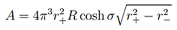 Este agujero negro tiene dos horizontes de sucesos: R+ y R- y podemos ver que