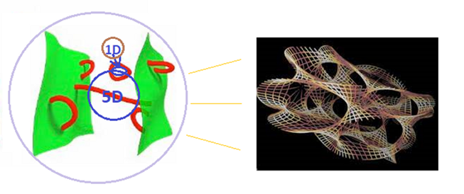 Izquierda: recreación de D-branas enrollando varias dimensiones compactadas y