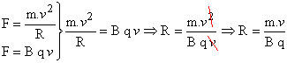 A fin de mantener la partícula moviéndose en un círculo de radio R y a velocidad constante, se debe equilibrar la fuerza magnética con la fuerza centrífuga