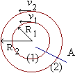 En la órbita designada por (1) en la figura, la partícula se mueve con velocidad v1, y debe recorrer 2pR1, que es la longitud de la circunferencia, así que: