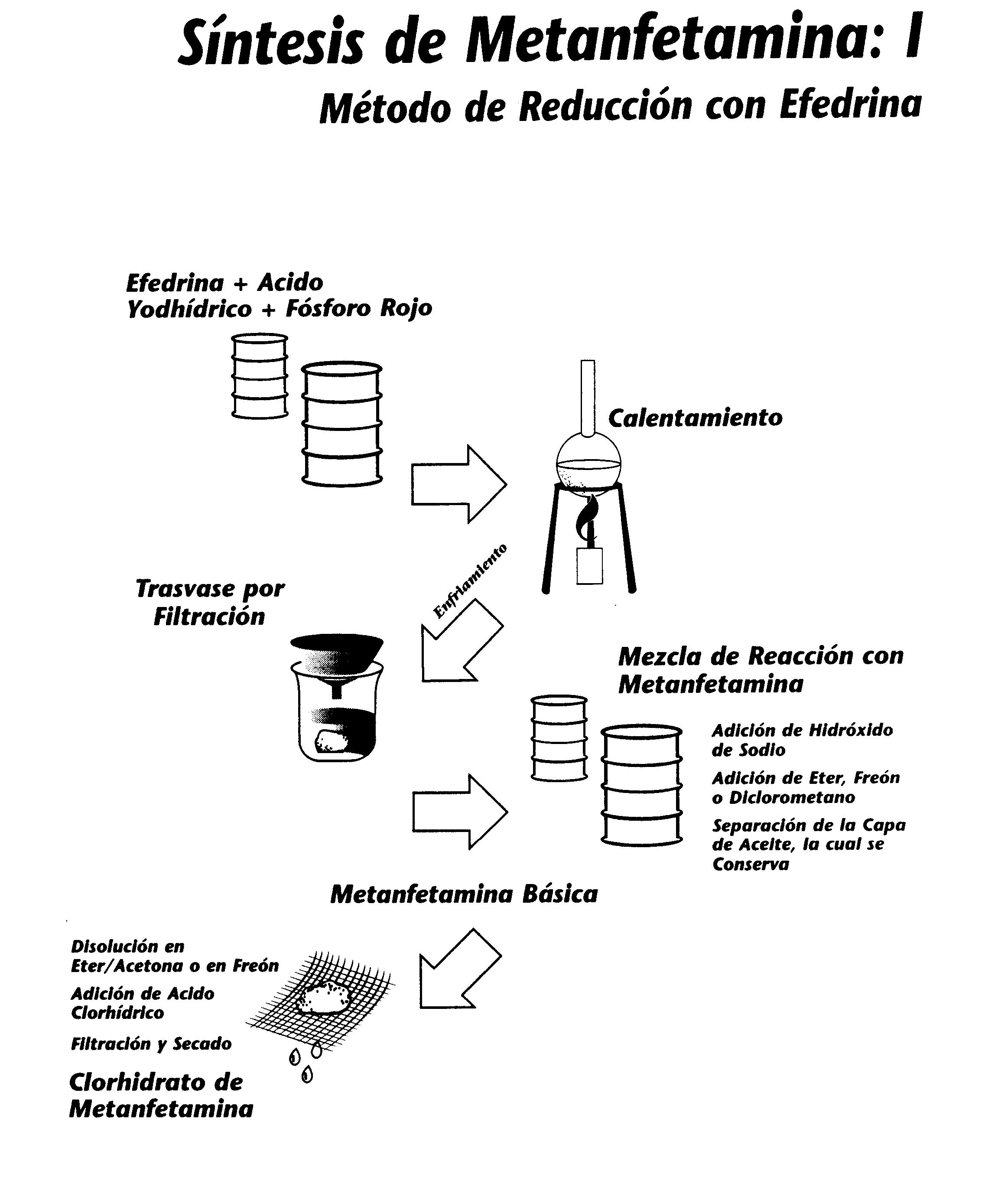 usa la efedrina a granel o en tabletas (con o sin extracción). La efedrina o seudoefedrina se calienta con