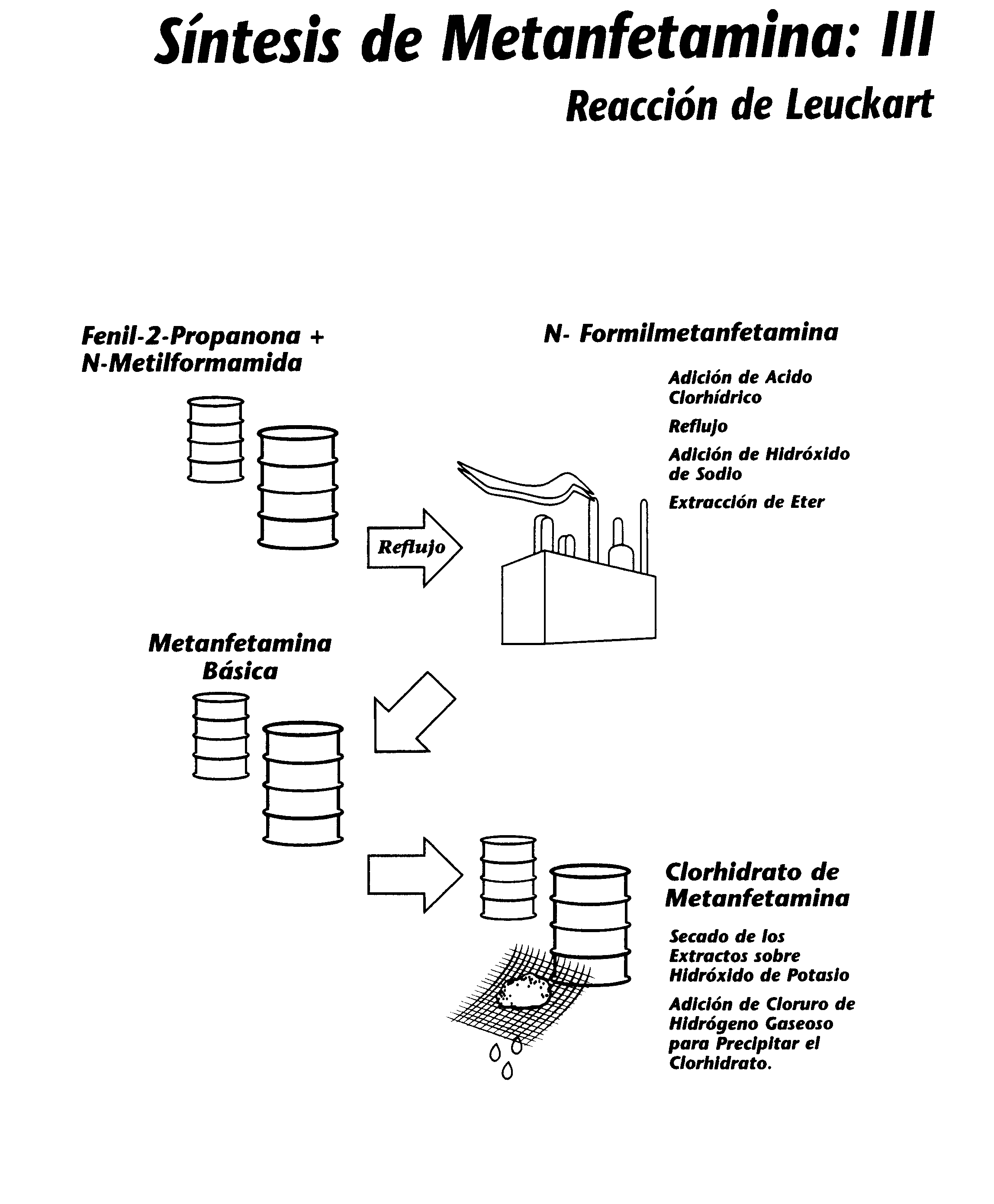 los laboratorios clandestinos solo utilizan extensamente unas pocas. Al parecer, la síntesis para la anfetamina