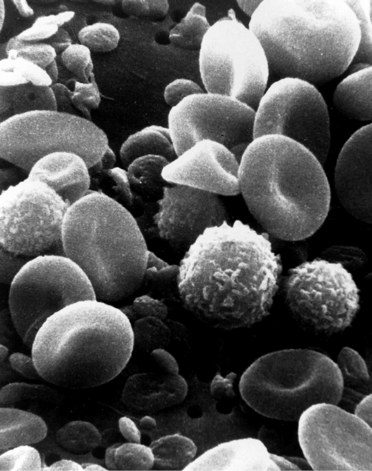 Microfotografía de microscopía electrónica de barrido mostrando células del tejido sanguíneo