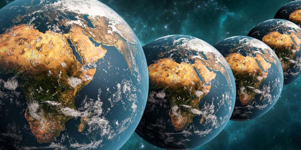 En sus indagaciones sobre estos universos, los físicos Jaume Garriga y Alex Vilenkin establecieron una característica crucial. Si pudiéramos ver una serie de películas que mostrasen la evolución cosmológica de cada uno de ellos, no todas serían distintas. Como cada región tiene un tamaño infinito y contiene una cantidad grande pero finita de energía, solo habrá un número finito de tramas diferentes. Intuitivamente, uno podría pensar que no es así, que habría infinitas variaciones porque, dada una historia cualquiera, siempre se puede modificar alterando la posición de una partícula en uno u otro sentido. Pero el caso es que si las alteraciones de posición son demasiado pequeñas, caen por debajo del límite de sensibilidad de la incertidumbre cuántica, y por lo tanto no tienen la menor consecuencia, mientras que si son demasiado grandes, las partículas dejarían de estar en la misma región o sus energías superarían el máximo disponible. Restringidas de este modo por las escalas más pequeñas y por las más grandes, nos queda solo un número finito de variaciones, de modo que solo es posible una cantidad limitad de películas.