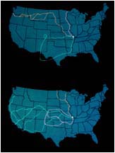 1806 Septiembre: Lewis y Clark regresan a Washington. Pike, remontando el río Osage, llega a las montañas Rocosas y las bordea hacia el Sur. Cruza el río Grande, se interna en México y, atravesando Texas, regresa a Louisiana al año siguiente.