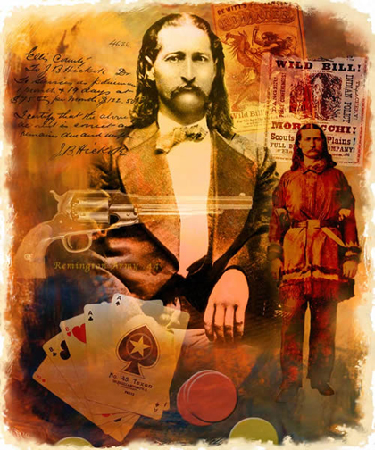 Wild Bill Hickcok es un personaje legendario gracias a su vida aventurera y al periodismo, que habría exagerado su carrera de soldado, espía, agente federal, guía, jugador y marshall. Con esa fama, y como ya sucedía entonces, llegó a formar parte del mundo del espectáculo, en el show de Buffalo Bill. En 1872 ya había matado a siete hombres, uno por accidente. Cuando Wild Bill Hickok llegó a Deadwood, pasó la mayor parte del tiempo jugando a las cartas, y tres semanas después lo mataron de un tiro por la espalda, mientras jugaba una partida de póker.