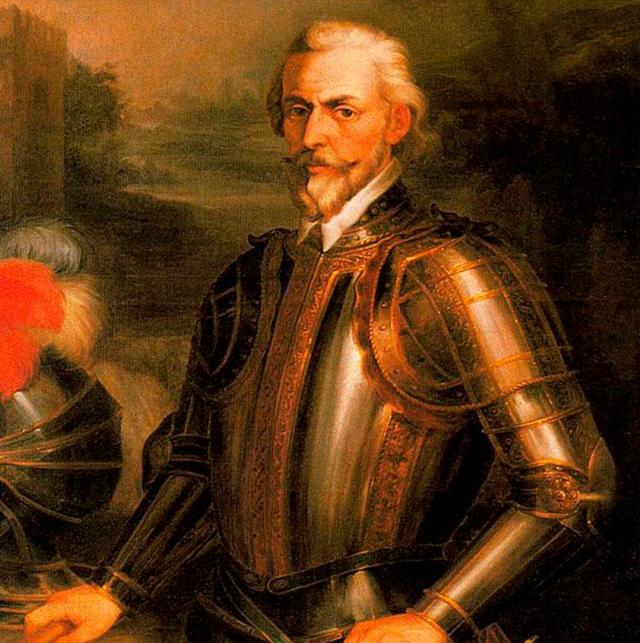 Alonso de Ojeda, nacido en Cuenca hacia 1470, fue un destacado militar durante la guerra de guerrillas en la campaña de Granada. Paje del duque de Medinaceli y bien relacionado con trato personal con Juan Rodríguez Fonseca, logró embarcarse en el segundo viaje de Cristóbal Colón. El almirante lo comisionó para que buscase la comarca del Cibao, en La Española, famosa entre los indios por su oro. Poco después tuvo que socorrer el fuerte Santo Tomás sitiado por el cacique Caonabó, a quien apresó con una añagaza que se hizo famosa: gracias a su simpatía y aspecto inofensivo, pues era pequeño, logró entrevistarse con el jefe indio, quien sentía fascinación por los metales sonoros, por lo que Ojeda le regaló una campana y unas extrañas pulseras que no dudó en ponerse; en realidad eran un par de esposas. Frente a estas habilidades, también destacaba su carácter excesivo y cruel, y dejó para la historia negra la invención de las guazavaras o carnicerías de indios. Algunas crónicas aseguran que en La Española había derrotado y masacrado a diez mil nativos con sólo cincuenta hombres. Ojeda también fue el responsable del primer cargamento de oro indiano traído a la Península con el que se hizo la custodia de la catedral de Toledo.
