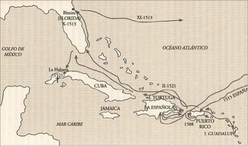 Como vemos, poco a poco, el eje de atracción antillano se va desplazando hacia occidente. Las noticias de descubrimientos y los rumores de la existencia de una gran civilización en el interior de las costas que rodean el golfo de México incitan a nuevas exploraciones, las Antillas pierden interés y se convierten en la plataforma para nuevas conquistas. En especial, Cuba y Santo Domingo serán en las próximas décadas la puerta de entrada o salida de las Indias.