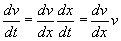 Cuando se alcanza la máxima velocidad dv/dx=0. La relación entre la velocidad máxima vm y la altura xm a la que se produce es