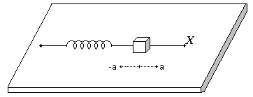 El máximo recorrido del oscilador según el eje x es x = a; en ese instante la energía es solamente potencial e igual a: