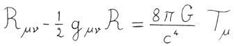 Densificando la fórmula, que constituye el corazón de la teoría de la relatividad general, en la cual Einstein dedujo matemáticamente la relación entre la geometría del espaciotiempo con la distribución de masa y energía, puede ser expresada como sigue: