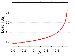 dependencia de la edad del universo en función de la constante cosmológica. Se