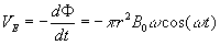 El flujo a través de una de estas líneas será (el vector campo B y el vector superficie S son paralelos) F =Bx·p r2 La fem inducida en la línea de corriente de radio r es