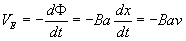 Como la velocidad horizontal de los portadores de carga v es constante, la componente horizontal de la fuerza resultante f debe ser cero fm·cosθ=fv La fuerza resultante f=fm+fv deberá por tanto, de estar dirigida a lo largo de la varilla, tal como se muestra en la figura. Cuando un portador de carga se mueve desde D a C la fuerza f realiza un trabajo sobre el portador de carga positivo igual a f·a, siendo a la distancia entre C y D Como f=fm·senθ, fm=qveB, y ve·senθ=v, concluimos que f=qvB La fuerza resultante sobre el portador de carga q en la varilla es f=qv×B, y el trabajo de dicha fuerza es qvBa Mientras el portador de carga se desplaza una distancia a desde C a D con velocidad ve·cosθ, la varilla se desplaza una distancia