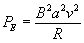 En el estado estacionario, la intensidad de la corriente es constante, la energía por unidad de tiempo suministrada mecánicamente al mover la varilla, se disipa en la resistencia en forma de calor. Si consideramos la varilla como una batería cuya fem es Vε=vBa. La potencia suministrada por la fem será Pε=Vε·i