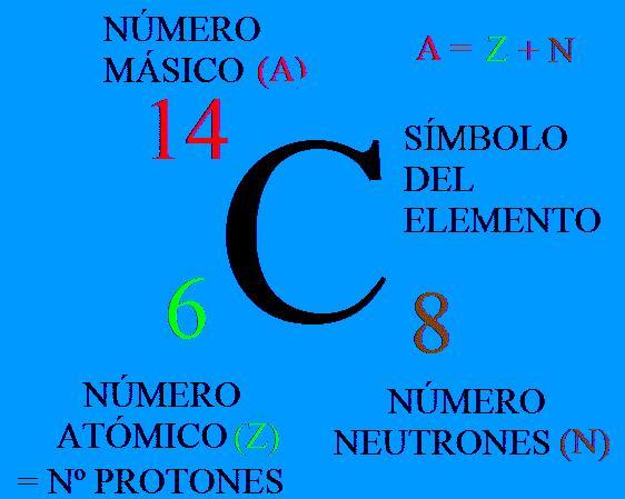 La cantidad de protones y de electrones presentes en cada átomo es la misma. Esta cantidad recibe el nombre de número atómico, y se designa por la letra "Z". A la cantidad total de protones más neutrones presentes en un núcleo atómico se le llama número másico y se designa por la letra "A". Si designamos por "X" a un elemento químico cualquiera, su número atómico y másico se representa por la siguiente simbología: