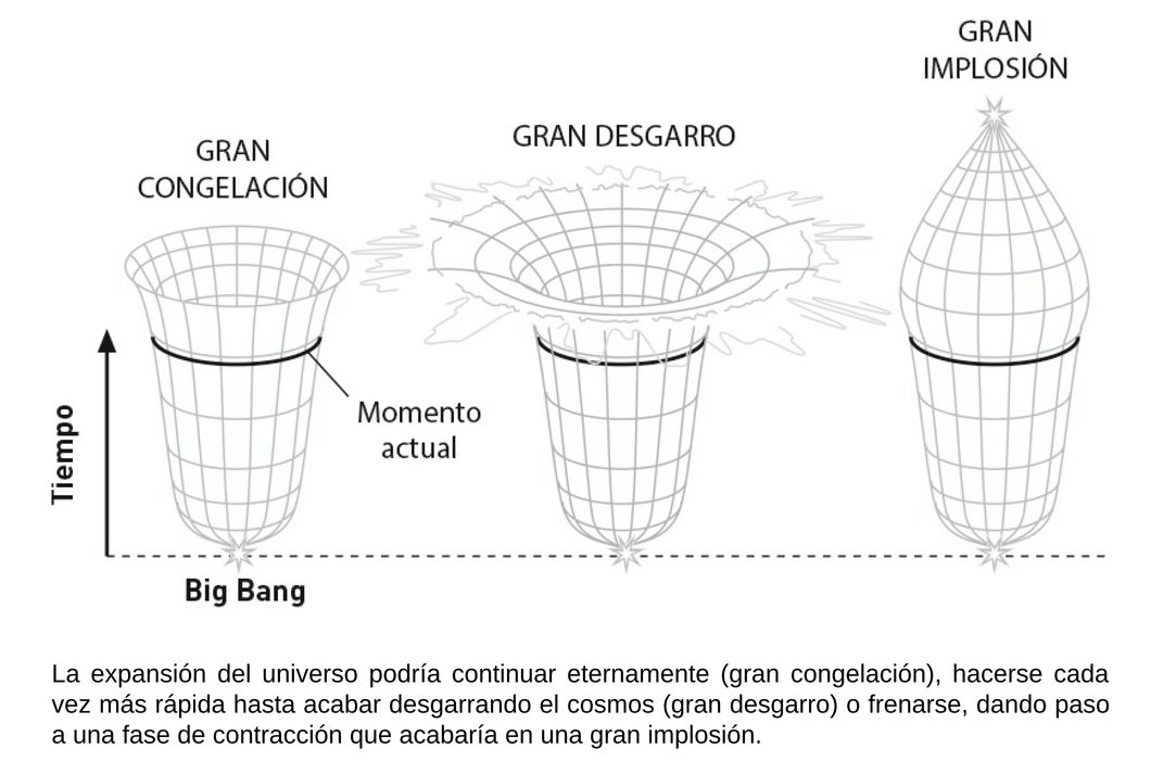 Uno de los motivos por los que queremos conocer la naturaleza de la energía oscura es porque el destino del cosmos depende exclusivamente de cómo evolucione esta componente. Aunque aún no podemos estar seguros de qué final nos aguarda, no parece haber muchas posibilidades, y ninguna de ellas es demasiado prometedora.