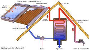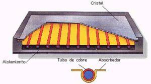 Los elementos básicos de un colector solar plano son la cubierta transparente de vidrio y una placa absorbente, por la que circula el agua u otro fluido caloportador. Otros componentes del sistema son el aislamiento, la caja protectora y un depósito acumulador. Cada metro cuadrado de colector puede producir anualmente una cantidad de energía equivalente a unos ochenta kilogramos de petróleo.