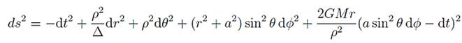 La métrica de un agujero negro en rotación denominada métrica de Kerr puede