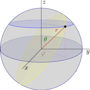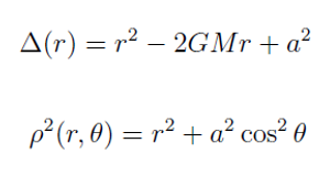 Las cuatro coordenadas del espacio-tiempo están expresadas en coordenadas polares: t= tiempo; r=distancia radial; theta=ángulo polar; fi=ángulo azimutal: