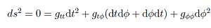 la métrica es nula, hacemos ds2=0 y tomando el plano ecuatorial