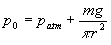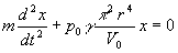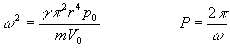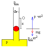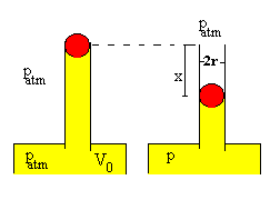 Los cambios de presión y de volumen del gas se describen mediante un proceso termodinámico. Si suponemos que la oscilación transcurre muy rápidamente podemos considerar que el proceso es adiabático. La relación entre la presión y el volumen del gas en dicho proceso viene dada por la ecuación. donde V es el volumen del gas, p la presión y g el índice adiabático del gas. Cuando la bola se ha desplazado x de la posición de equilibrio, el volumen se ha reducido en V0-p r2x y la presión en el recipiente ha cambiado a p, de modo que Despejando p Dado que p r2x<< V0. Empleando el desarrollo de Newton (a+b)n hasta el primer término