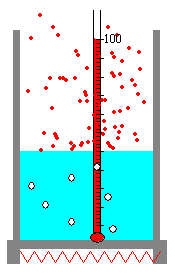 Medida del calor de vaporizaciónPara medir el calor de vaporización se coloca un recipiente metálico con una masa m de agua sobre un hornillo eléctrico de potencia P. Sea la temperatura inicial del agua es Ta. A medida que transcurre el tiempo se va elevando la temperatura del agua, hasta que entra en ebullición a 100 ºC. Anotamos el tiempo t1. El agua se evapora, disminuyendo el nivel de agua en el recipiente hasta que toda el agua se ha convertido en vapor. Anotamos el tiempo t2 que transcurre desde el comienzo de la ebullición hasta que se consume el agua.