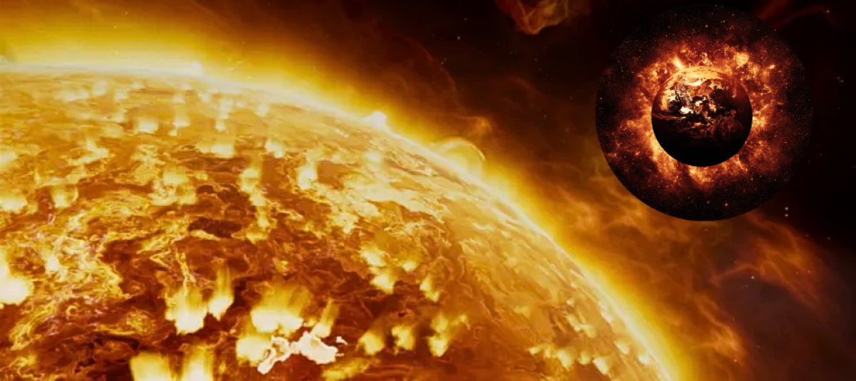 El Sol iniciará entonces una implosión, y a media que su imponente peso se colapse hacia el interior, su temperatura se disparará. El intenso calor y la fuerte presión, todavía lejos de las condiciones necesarias para que se inicie la fusión del helio, desencadenarán una nueva ronda de fusión, esta vez en la fina corteza de núcleos de hidrógeno que envolverá el núcleo estelar, constituido en su mayor parte por helio. En esas condiciones tan extremas, la fusión de hidrógeno procederá a un ritmo extraordinario, produciendo un empuje hacia fuera más intenso que el que nunca ha experimentado el Sol, y que no solo frenará la implosión, sino que hará que nuestra estrella se hinche enormemente.