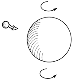 Antes de seguir, aclaremos una cuestión importante: ¿acaso se puede medir el momento angular de un agujero negro? En contra de lo que podría esperarse, tal medición es posible, aunque de manera indirecta. La relatividad general predice un curioso efecto —descubierto por J. Lense y Hans Thirring en 1918— por el cual un cuerpo masivo en rotación no sólo atrae gravitacionalmente a otros cuerpos masivos en su vecindad sino que también los arrastra en el sentido de su rotación (Figura 10). Así como un objeto al girar en el agua, forma un remolino que arrastra consigo a las partículas del ruedo, análogamente, el efecto de Lense-Thirring hace que el espacio-tiempo alrededor de un cuerpo rotante arrastre la materia a su alrededor.