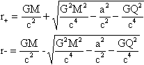 Los radios de los horizontes externos e internos, que denotaremos r+ y r- respectivamente, son: