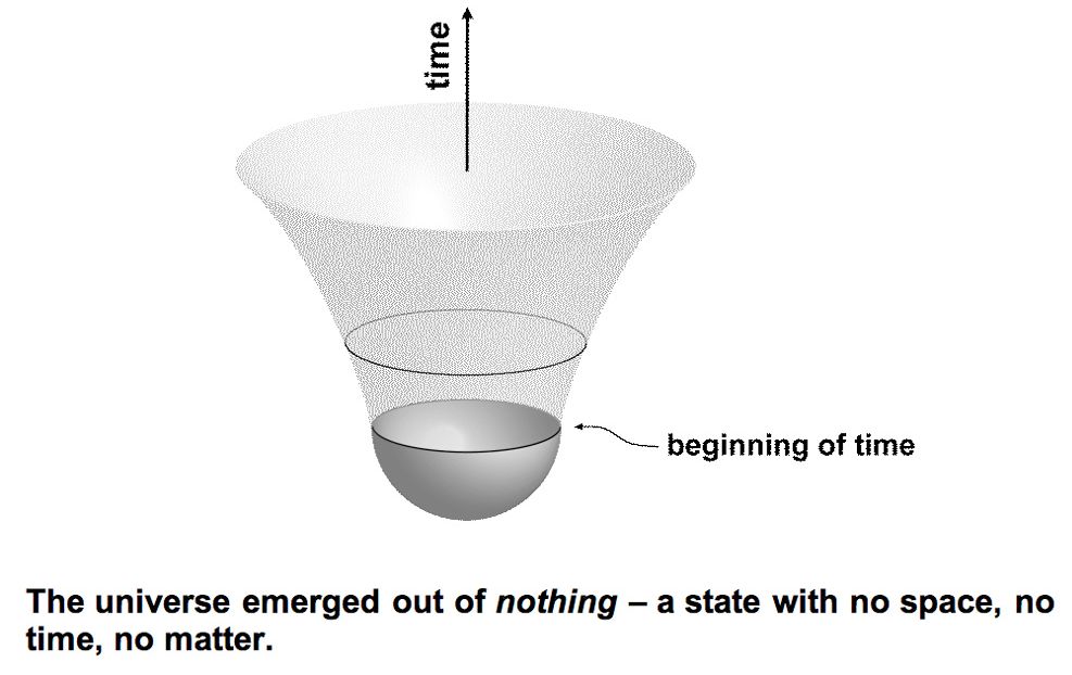 La idea de un Universo que se materializa a partir de la nada resulta inconcebible. ¿Qué significa exactamente "nada"? Si esta nada pudiera atravesar un túnel y llegar a algo, ¿cuál sería la causa de este hecho, de atravesar un túnel hacia un "algo? El estado inicial previo a la formación del túnel es un Universo cuyo radio se esfuma, es decir, no es un Universo. No hay materia y no hay espacio en ese estado tan peculiar. Y tampoco hay tiempo. El tiempo solo tiene significado cuando ocurre algo. Medimos el tiempo usando procesos periódicos como la rotación de la Tierra sobre su eje o su movimiento alrededor del Sol. En ausencia de espacio y de materia, es imposible definir el tiempo.