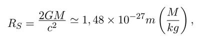 Para tener una idea de las colosales concentraciones de masa, o de su equivalente en energía, implicadas en la formación de un agujero negro, notemos que si en la ecuación (1) tomamos la masa terrestre, M = 5; 97 1024 kg se obtiene RS = 9 mm que es el tamaño de una canica.
