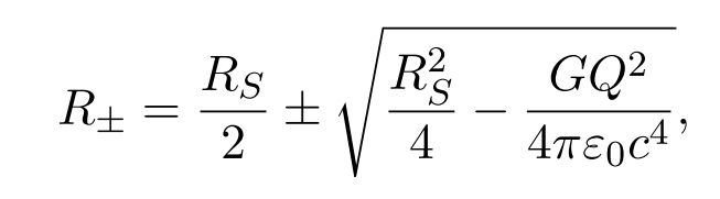 donde €0 = 8; 85 10-12 C2 N m-2 es la permitividad del vacío. El radio del horizonte interno es: