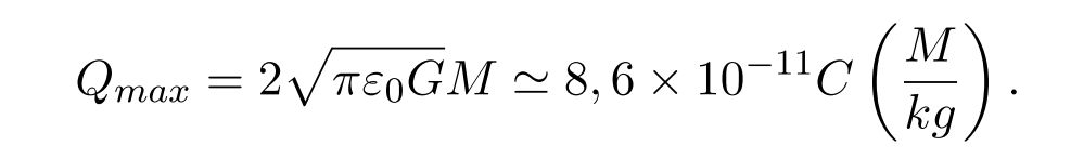 A partir de la ecuación (4) podemos calcular la carga máxima que puede tener un agujero de Reissner-Nordstrom. Como la cantidad subradical no puede hacerse negativa, la carga máxima se calcula haciendo que dicha cantidad se anule: