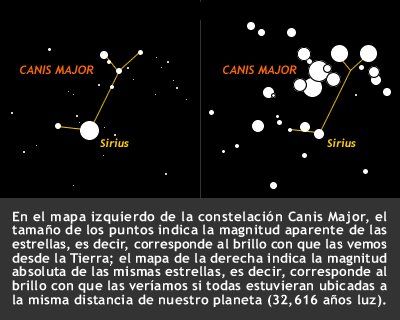 El brillo aparente de un astro no nos da información sobre el astro, sino sólo de cómo lo vemos desde la Tierra. Esto es lo que se llama magnitud relativa o aparente (m). Para comparar objetivamente la luminosidad de las estrellas se usa la magnitud absoluta (M), que es aquella que tendría a una distancia fija de 10 parsec ( 32,6 años luz).