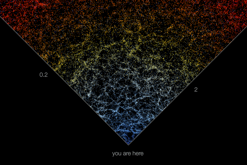 ¿Qué habría que hacer para abordar estas cuestiones? Cartografiar nuestro Universo En concreto, debemos obtener un mapa tridimensional de este Universo lo más completo posible. El mayor volumen que posiblemente logremos cartografiar es la región del espacio en la que la luz ha tenido tiempo de alcanzarnos desde la distancia. Este volumen se corresponde en esencia con el interior de la esfera de plasma del Universo, donde más del 99,9 % del volumen permanece inexplorado. Asimismo, se aprecia que el mapa tridimensional de galaxias más ambicioso que se ha realizado, el del Sloan Digital Sky Survey, tan solo cubre nuestros alrededores cósmicos: ¡este Universo es sencillamente descomunal! Para introducir en esa imagen las galaxias más distantes conocidas, habría que situarlas un poco más allá de la mitad del camino hasta el borde y serían pocas y demasiado alejadas entre sí como para conformar un mapa tridimensional útil.