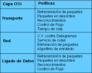 Recordemos que el propósito de la capa de transporte es ofrecer servicios eficientes, confiables (si así lo pide el cliente) y expedito al nivel superior que casi siempre es la aplicación misma (nuestros programas en sockets cliente-servidor) o bien un servicio confiable (como el NFS, NetNews, FTP, Telnet y muchos más). La capa de transporte ofrece servicios orientados y no orientados a la conexión, y pueden ser confiables o no confiables, y esto al parecer es lo mismo que ofrece la capa de red, excepto que el control de la capa de transporte es llevada a cabo en un nodo (computadora) particular y no en la subred. De tal manera podemos decir que de la capa de red para abajo tenemos una capa gigante llamada Proveedora de Servicio de Transporte, mientras que las superiores se pueden llamar Usuarios del Servicio de Transporte. También podemos decir que la capa de transporte es el límite entre nuestro proveedor de servicio de red física (subred) y el usuario final. Aprovechando que la capa de transporte es el colchón entre la subred y la aplicación, la podemos ver como la capa que subsana las posibles deficiencias que la subred tiene para ofrecer un servicio que satisfaga a nuestras aplicaciones. Y la satisfacción va de la mano con la calidad, la cual se puede especificar en términos de los siguientes conceptos.