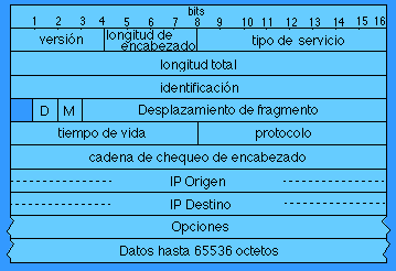 Un paquete de IP tiene una estructura compuesta de una parte de encabezado y otra de datos. El encabezado consta de 20 octetos fijos y de una parte de opciones cuyo tamaño es variable (de cero o más octetos).