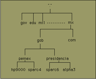 Un dominio es una cadena conformada por la concatenación (usando un punto) de los diferentes subdominios partiendo del dominio superior punto. Por ejemplo, existen dominios genéricos y de país. Para México, el dominio superior es "mx". Un subdominio de "mx" es "itesm" o bien "udlap". A su vez, "pue" es un subdominio de "udlap", lo cual nos da el dominio completo "pue.udlap.mx.".