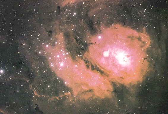 La nebulosa "Laguna", a unos 5.200 años luz de distancia de nuestro planeta, es una de las nebulosas de emisión más lejanas que pueden observarse mediante binoculares y telescopios pequeños.