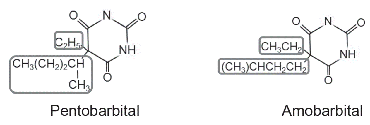 modifica la duración de su acción farmacológica: mientras el pentobarbital tiene una acción corta el amobarbital